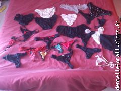 J'avais commenté hier mais a priori ça n'a pas fonctionné ! Moi aussi j'aimerai me glisser dans ces strings pour bien sûr sentir leur douceur mais aussi pour partager la mouille que notre Miss a du y laisser !